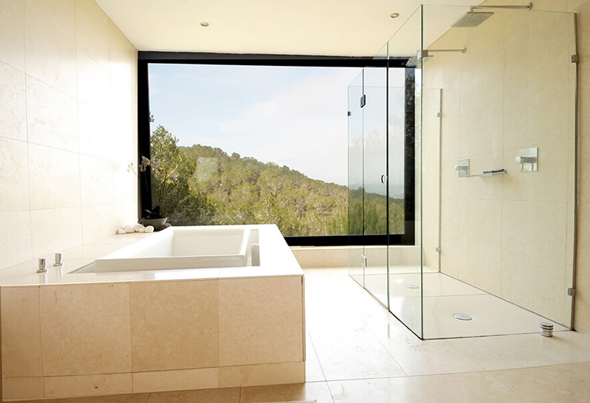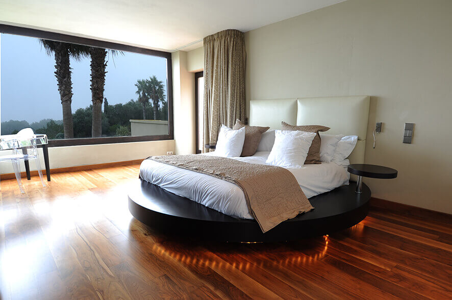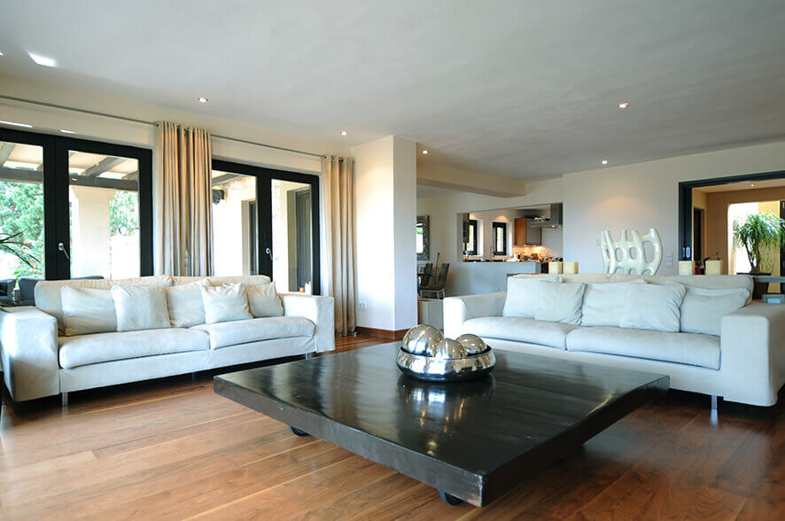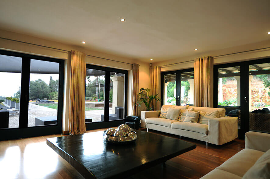 Nevertheless, Casa Noir is also centrally located: Ibiza Town is less than ten minutes by car. Santa Eulalia is a mere stone’s throw away, at less than five minutes by car. Expect airport transfers to take around twenty minutes. The nearest beach can be reached in under ten minutes by car, and almost every beach on the island can be accessed in under thirty minutes.
