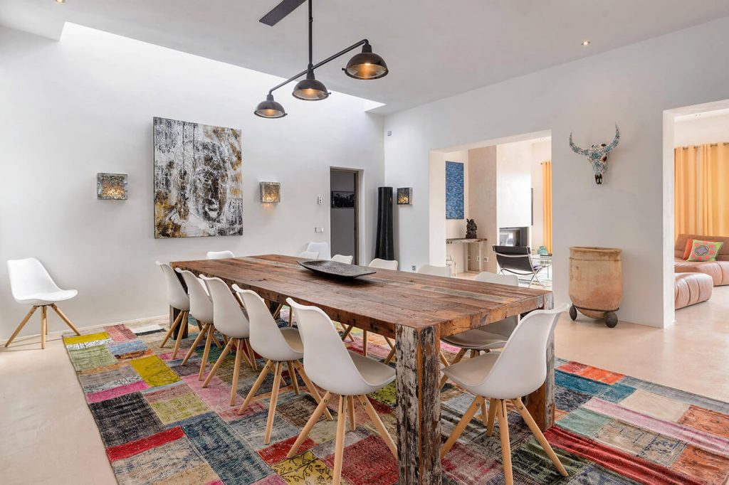 In the main house, guests will first encounter a capacious entrance hall with guest toilet and the clean, contemporary decor that emphasises ethnic accents throughout this tasteful property. The large living room boasts a fireplace, Sonos sound system and satellite TV – -plus fabulous views of the pool. You can move seamlessly from here to the open kitchen, which in turn features access to the outdoor barbecue area.
