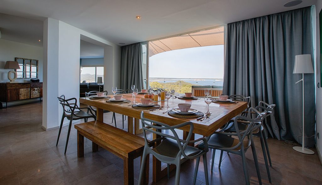 This is a property that emphasises the Ibizan lifestyle: traditional al fresco dining, glorious sunsets, spaciou and open plan living. Gaze out on beauty from every window.
