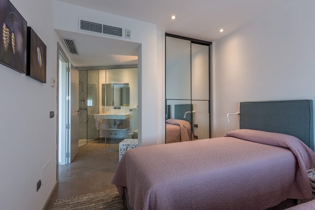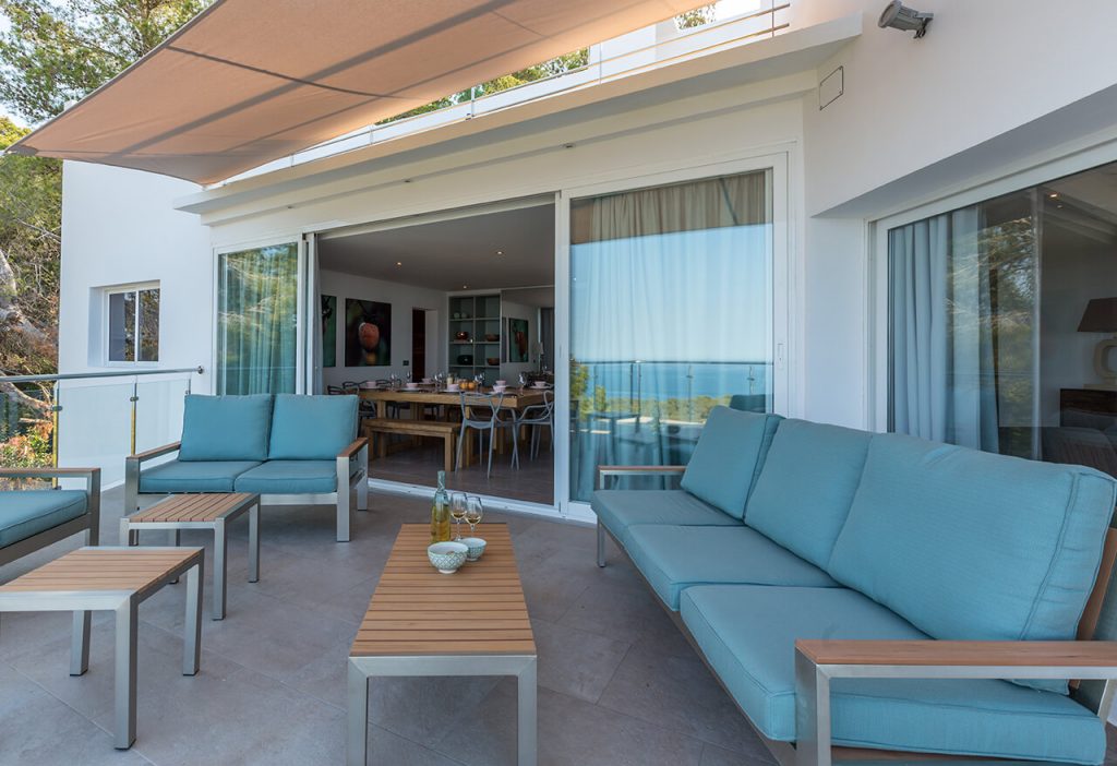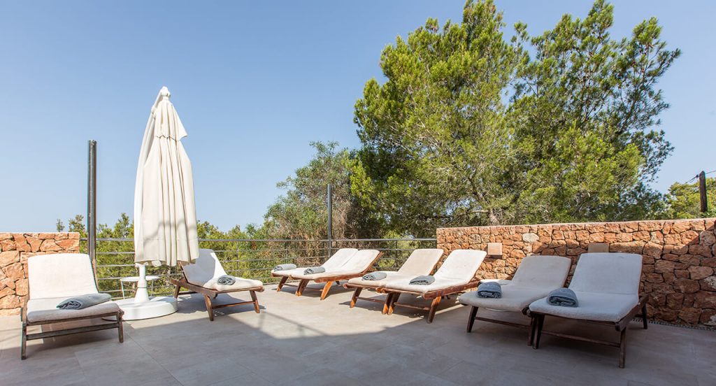 There are four floors at Can Elegant – if one includes the wonderful roof terrace, which acts as a colarium – equipped as it is with sun beds, couches hammocks. Its main living area, however, is on the ground floor, and includes a dining room for twelve people with a sea view and direct access to the terrace.
