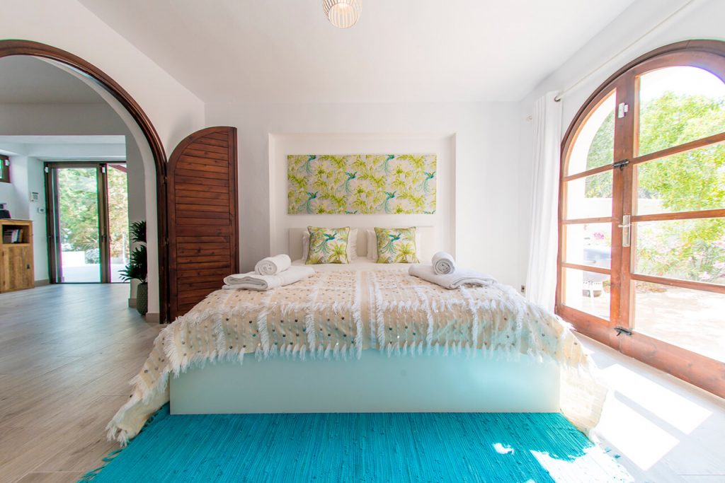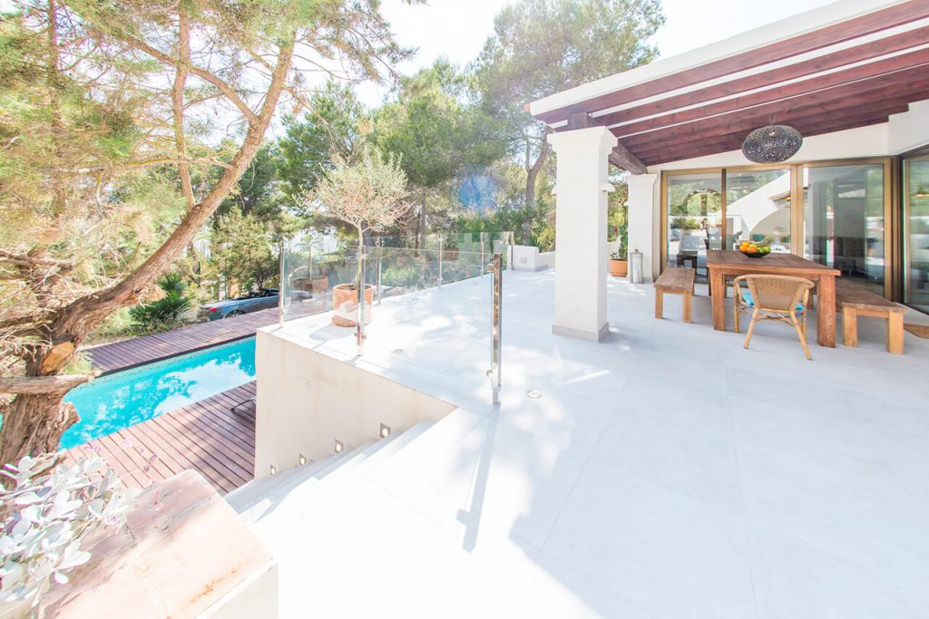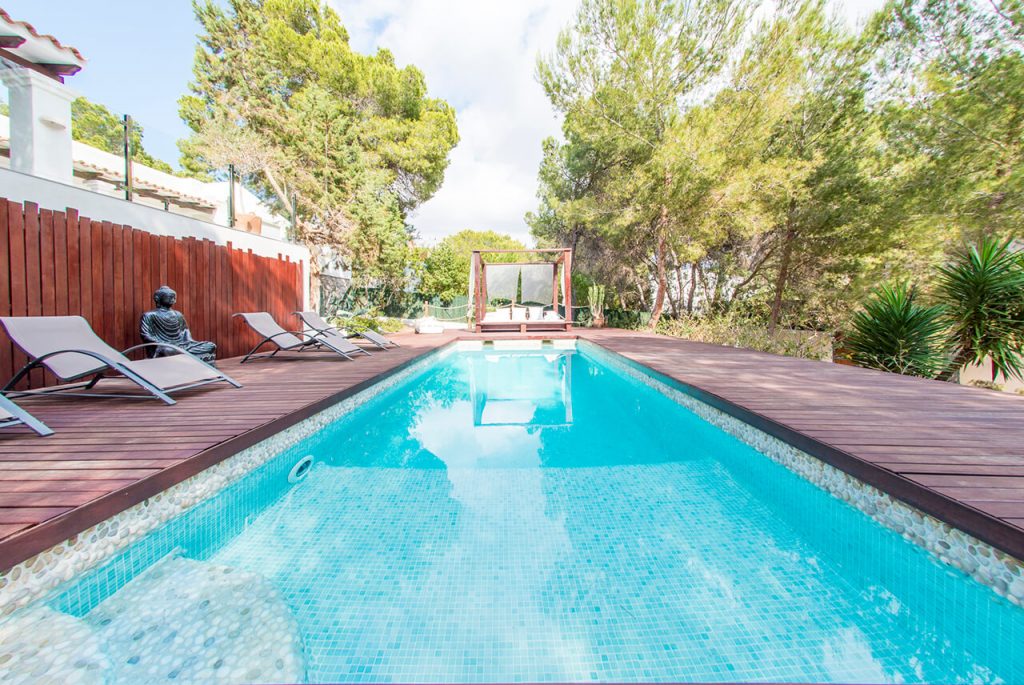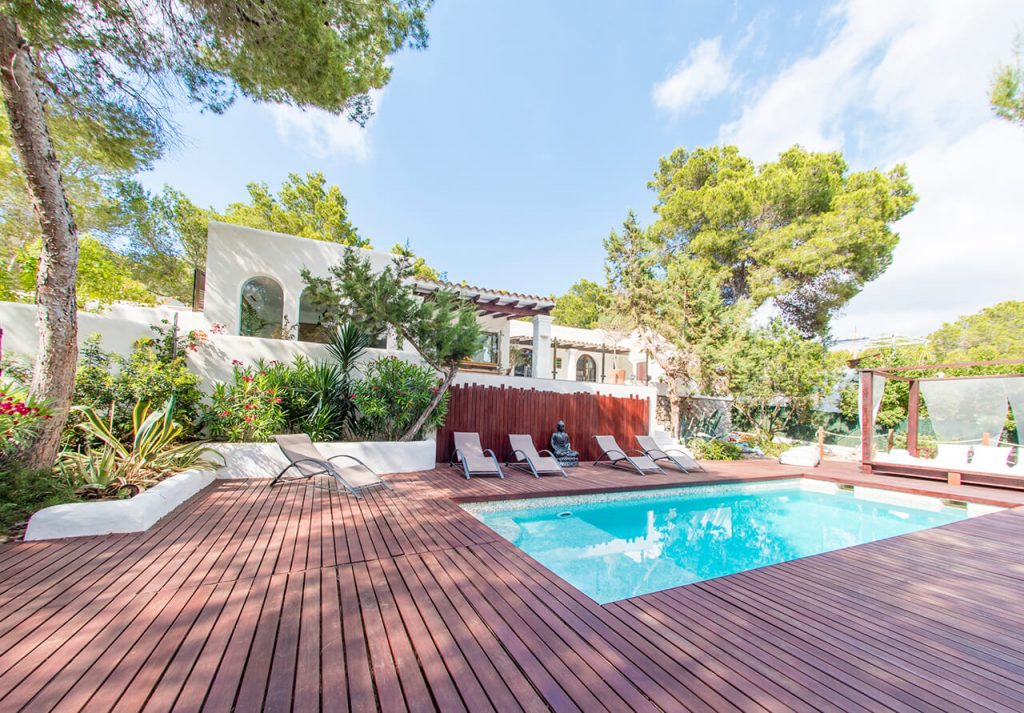 The villa is perched above the stunning beach of Cala Tarida, and a 200m stroll to the beach means that car hire is not a necessity. Surrounded by a thick pine forest, the pool area is a slice of paradise. Luxury decking and a huge Balinese daybed provide maximum poolside comfort.