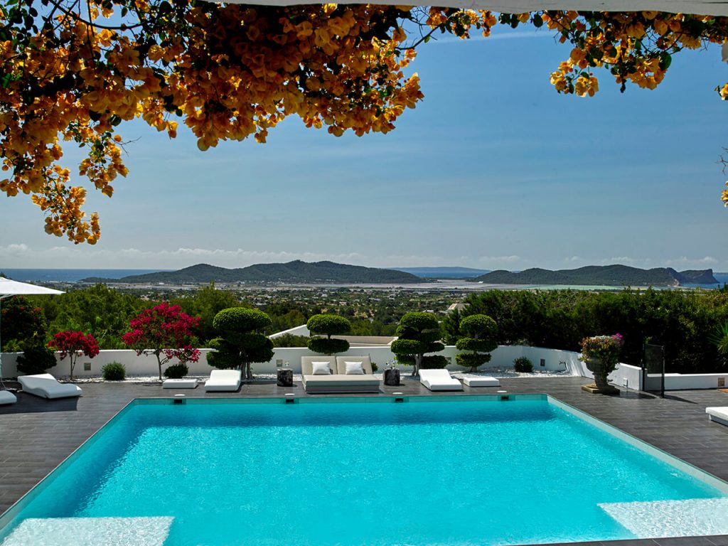 Villa Blanco is located 4km from Ibiza Town in a quiet and secluded spot. Its south facing orientation provides breathtaking panoramic sea views across Playa d’en Bossa, Salinas and Formentera. Close enough to the main resorts to easily access Ibiza’s many splendours, yet just far enough to provide an idyllic, tranquil setting, this property offers the best of every possible world.