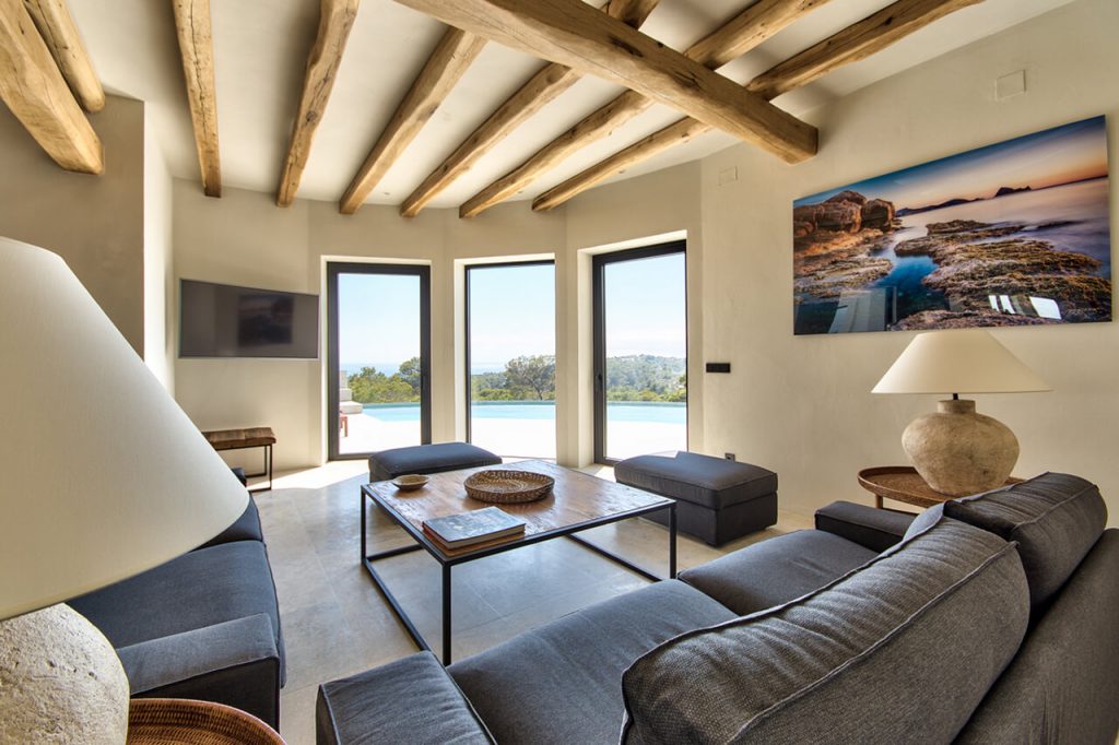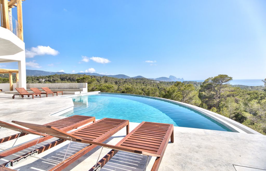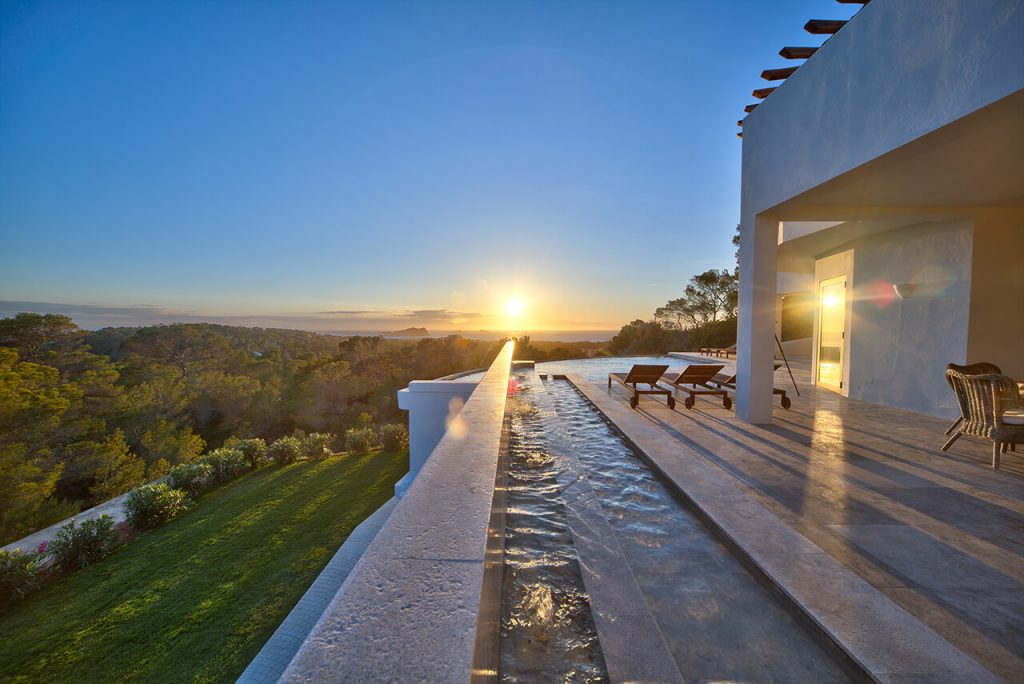 The property has stunning 270-degree, unobstructed views onto the sea in Cala Conta—and the mythical rock of Es Vedra island is in the distance on the other side. The sunsets into the sea are simply breathtaking.