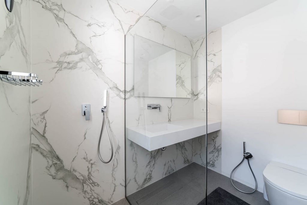 There are five luxurious bedrooms, too – each with en suite bathrooms with showers, and all furnished to the highest standard with designer furniture. Each room has a comfortable King Size bed, private terrace and stunning views.