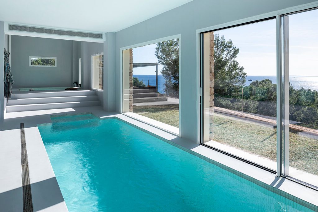 The property’s exterior has been spectacularly designed and there are endless stunning sea views. There are two outdoor pools and a heated indoor pool. Of the outdoor pools, one is located on the same level as the covered terrace, with the second below the garden.