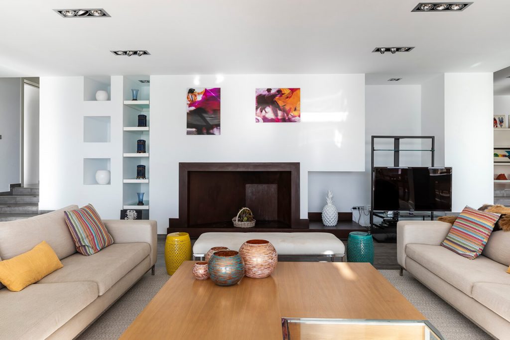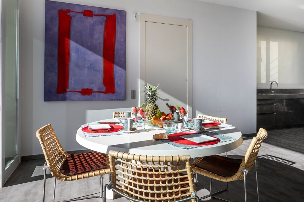 Roca Llisa is a prestigious neighbourhood just ten minutes from Ibiza town and five minutes from the village of Jesús. It has its own private beach, Cala Olivera, small but serviced by a great beach hut that serves excellent fish and seafood. An eighteen-minute drive will take you to Ibiza’s airport, and in five minutes you’ll be in Cala Llonga or Santa Eulalia.