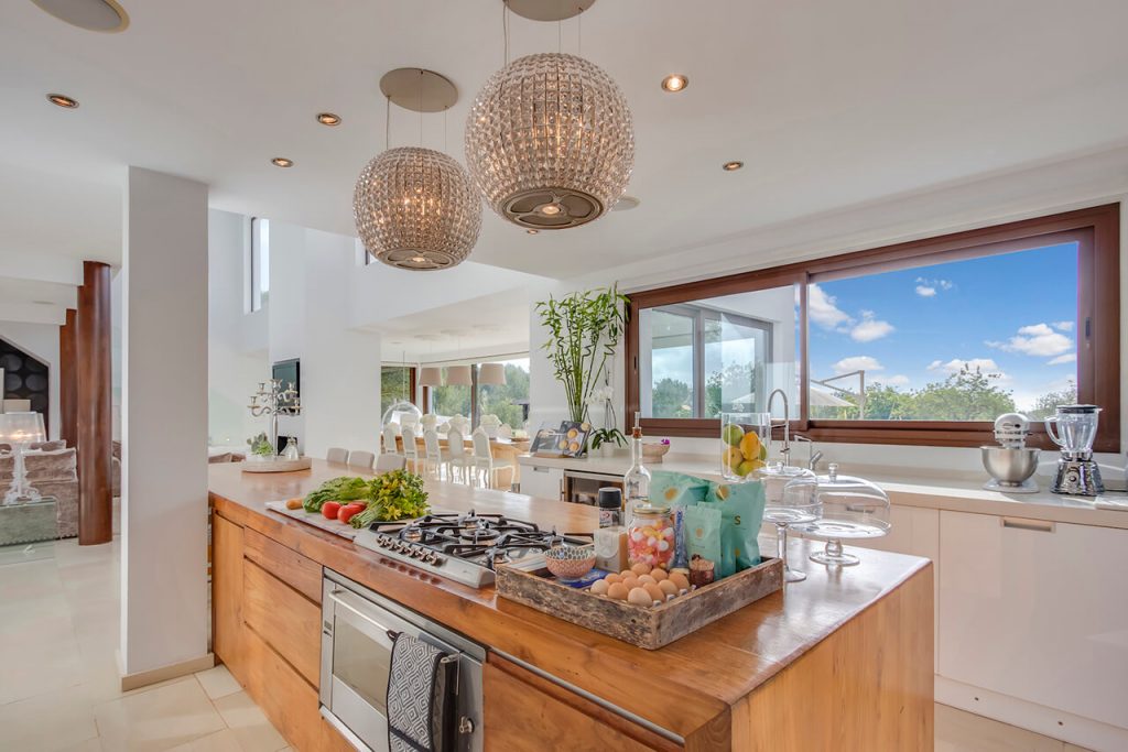 The open-plan layout of the villa seamlessly links the living room with the kitchen, dining area and the outdoors. Facilities include a 42″ plasma TV, surround sound and a Blu-ray DVD player (with an extensive DVD library available), Sky TV and a fully integrated sound system wired throughout the house and onto the pool terrace. WiFi is also accessible throughout the house.