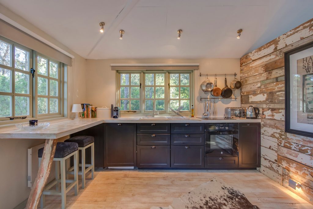 The supremely equipped kitchen surrounds a five-metre-long centre island and breakfast bar. There is a three-door American fridge freezer and ice dispenser, alongside a wine cooler, two dishwashers, a Quooker instant hot water tap, a Smeg oven and a five-ring hob. Children can also enjoy their own dedicated playroom with flat screen TV and a selection of children’s movies and toys. There is also a single raised sofa / bed should overflow accommodation be needed.