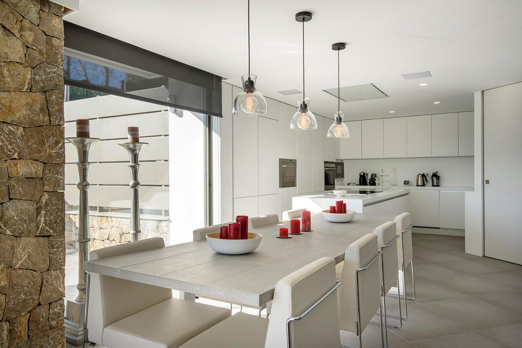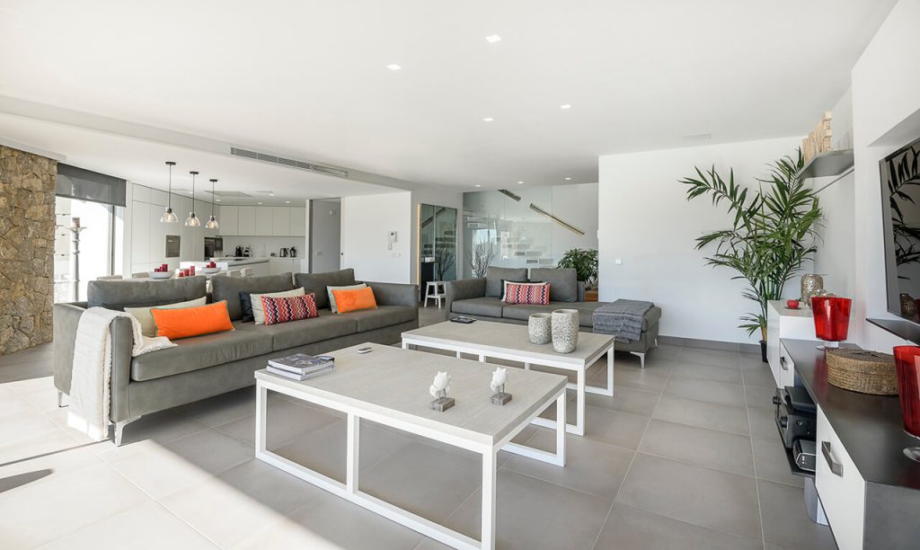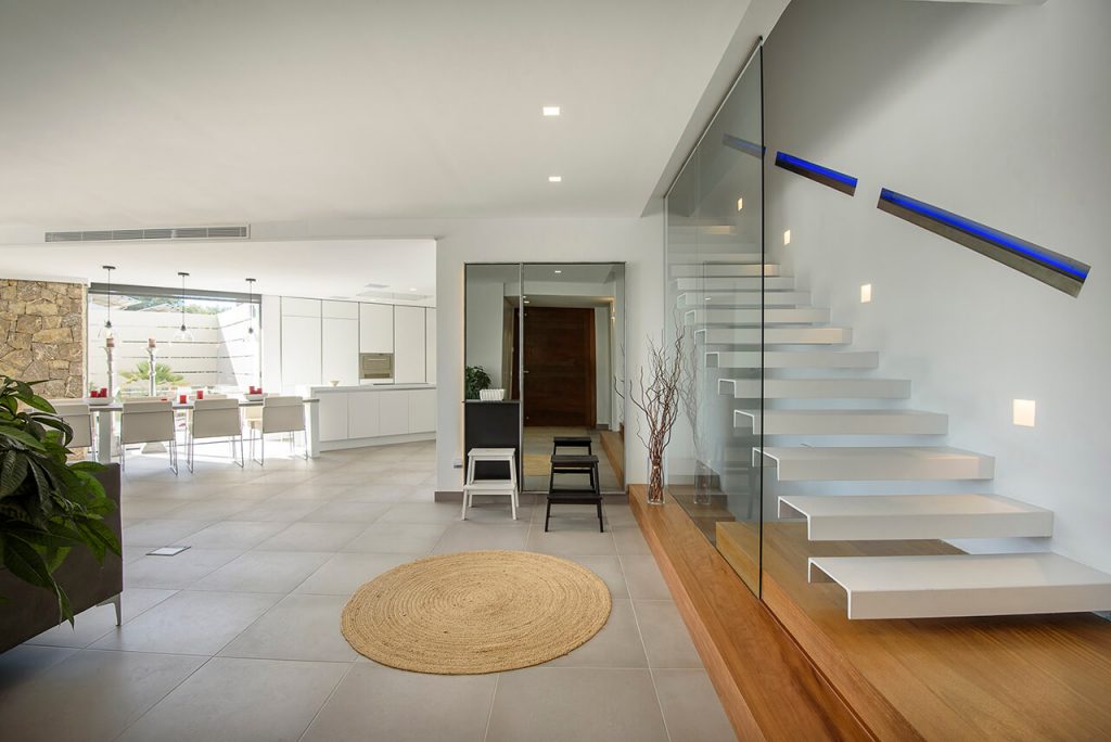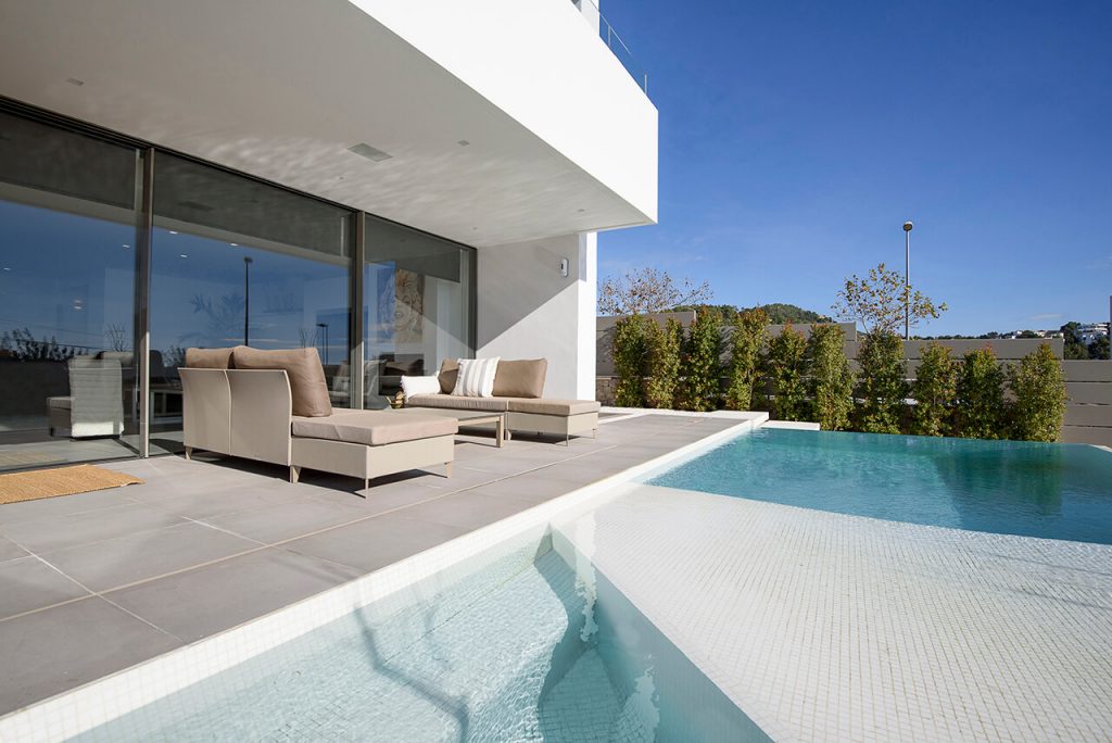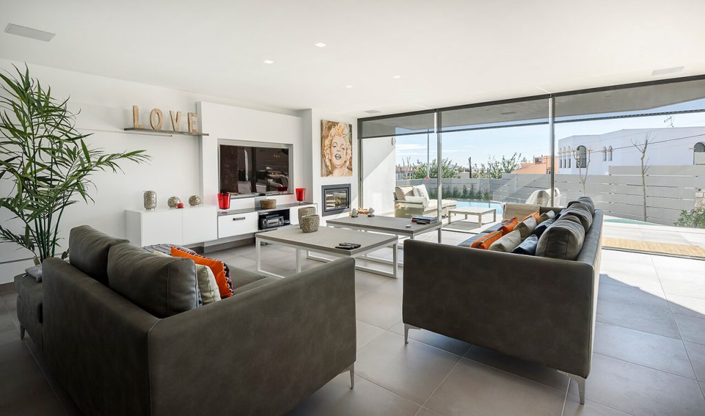 No expense has been spared in the construction of this house, with high quality materials used throughout, such as Corian (for the kitchen work surfaces and showers) and Hans Grohe (in the Bathroom Suites). The property has customisable LED lighting both inside and out, allowing you to change the brightness and colour in accordance to your mood/taste. Huge windows allow light to flood into the property, and provide spectacular views of Talamanca beach and Dalt Villa.