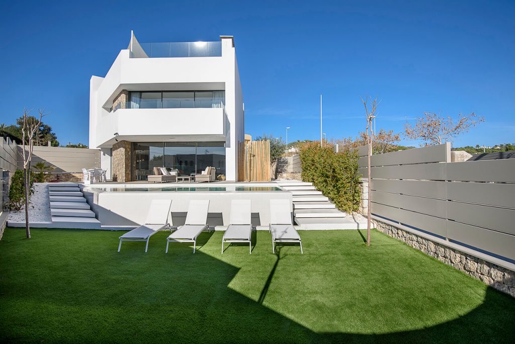 Combining unique, innovative design with minimalist decor, this luxury house is made up of four double suites – with private bathrooms, living room, kitchen, swimming pool and two outdoor terraces (one on the top of the house and the other at the poolside). The house is finished to an incredibly high standard, offering features such as an internal elevator and integrated speakers in every room.