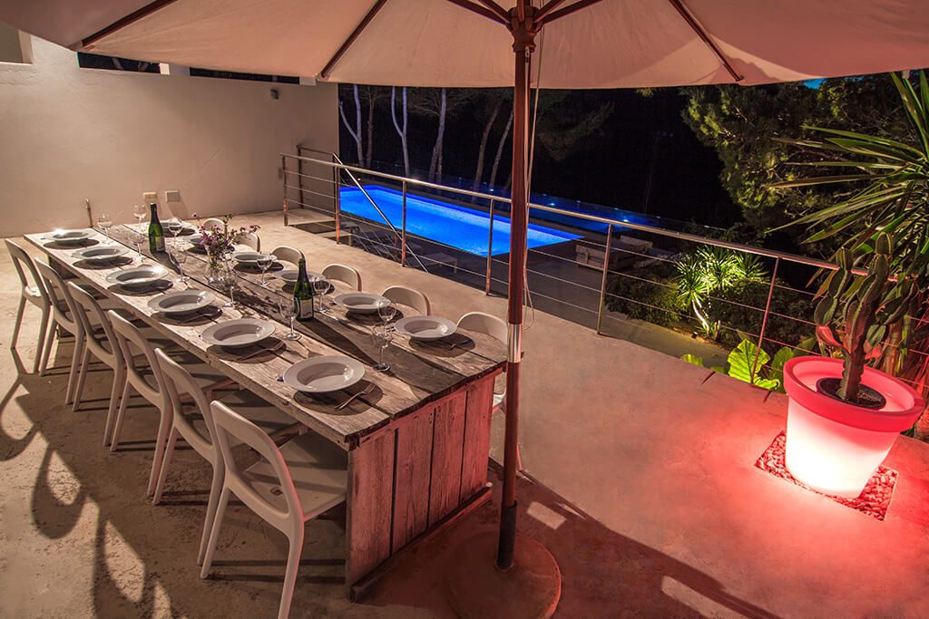 This stunning 6 bedroom property is located in the hills next to the village of San Agustin, only 5 minutes from San Jose and 20 minutes from the airport and Ibiza Town. The house offers both intimacy and privacy as a result of the spacious common areas located throughout the house and grounds.