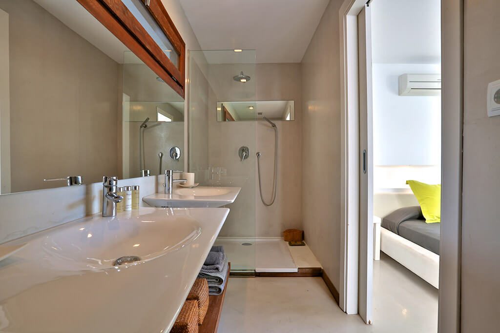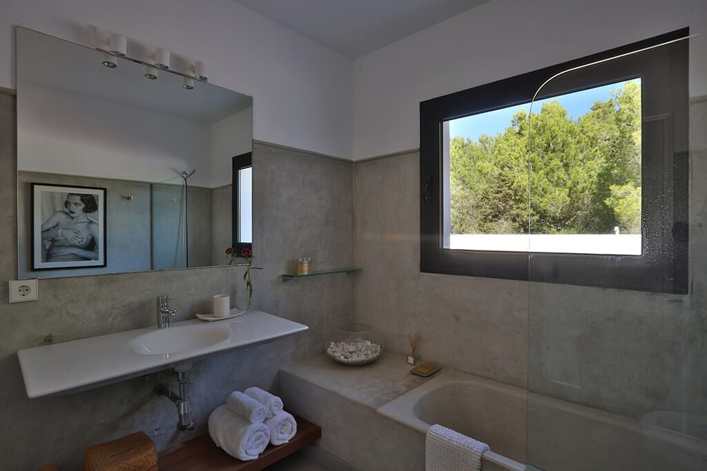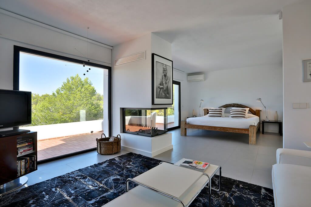The terraces around the 8m x 6m infinity pool are oriented towards the sunset, with views across the sparkling Mediterranean waters to the islands of Conillera, S’Espartar and Es Vedrá.