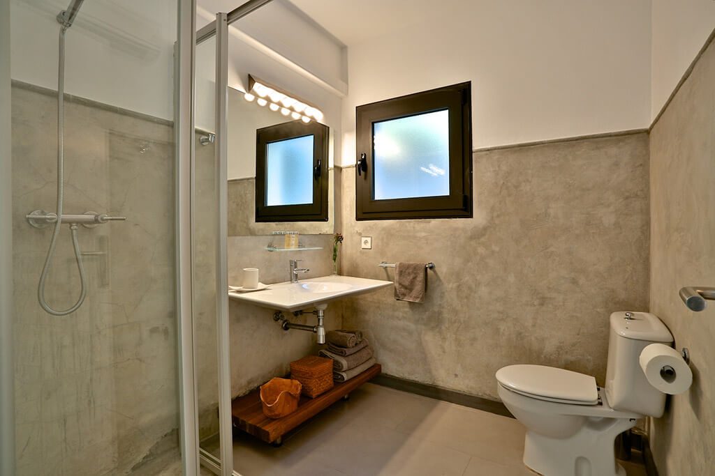 The ground-level suite has sliding doors with access to the pool and terrace area. On the upper-floor, the suite has its own living room with fireplace and a private rooftop terrace as well as an en-suite with polished cement stone bathtub.