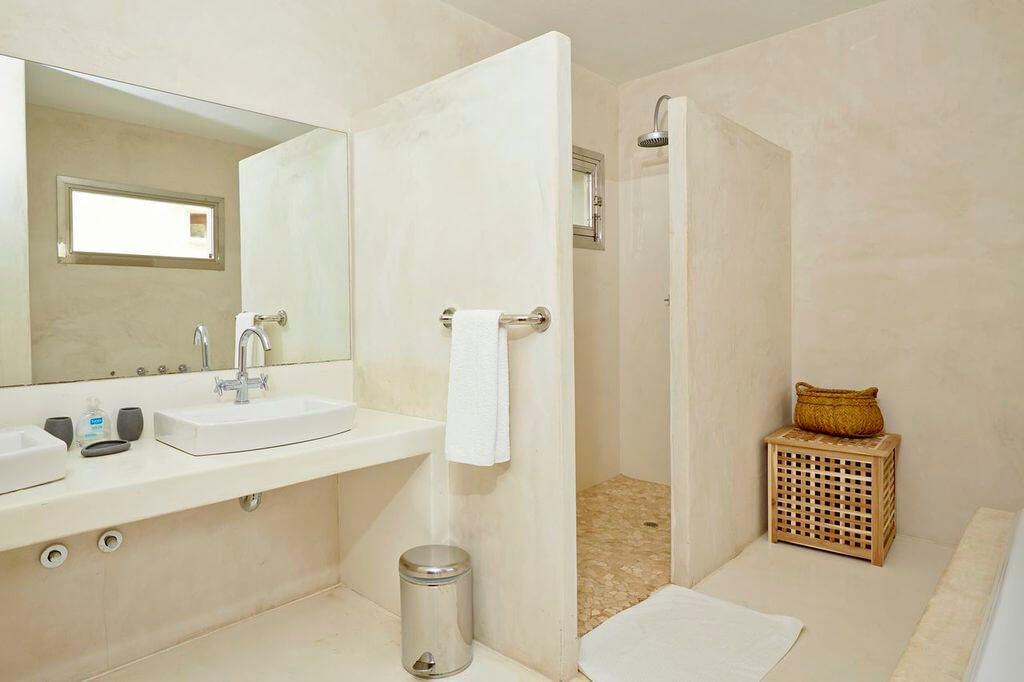 It is very modern in style with polished cement floors and bathrooms throughout. The villa has featured in photo shoots for interior/fashion magazines/advertising campaigns. Air conditioning and underfloor heating, Sky TV and Wireless internet throughout are just some of the features of this property.