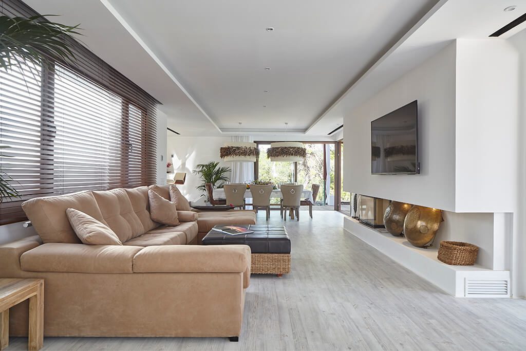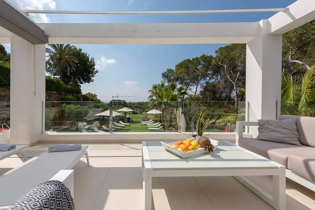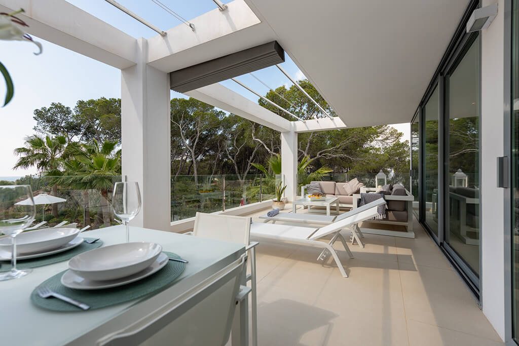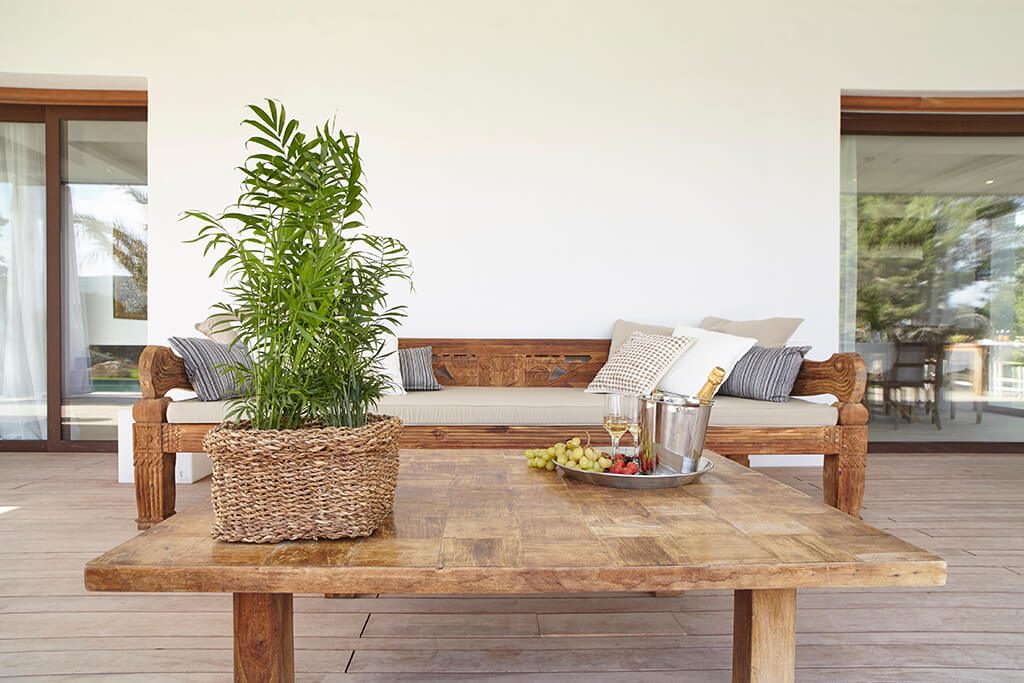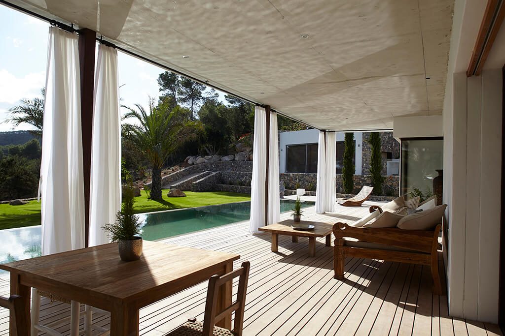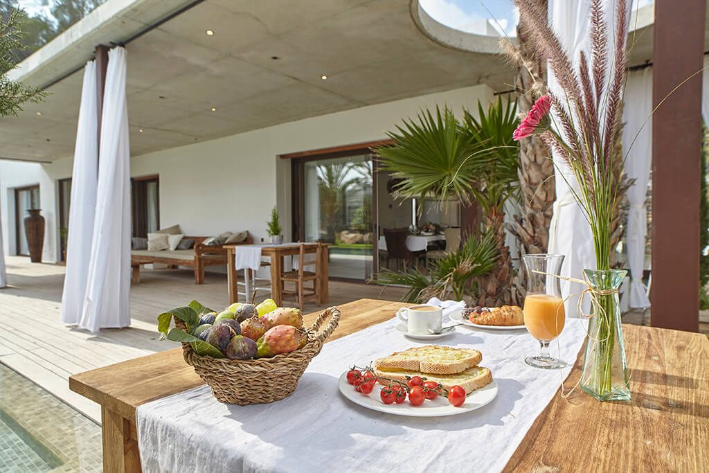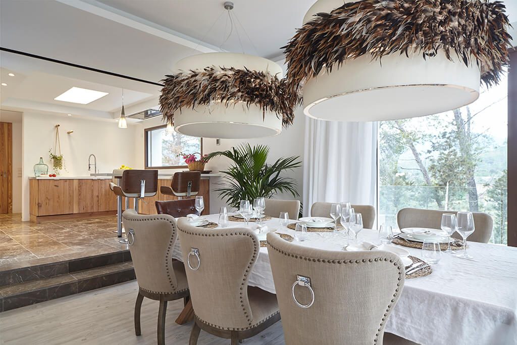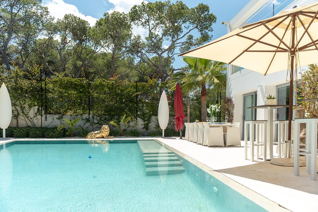 This newly furnished and beautifully designed villa is located in just two kilometres from the beach, in one of the most sought-after areas of Ibiza.