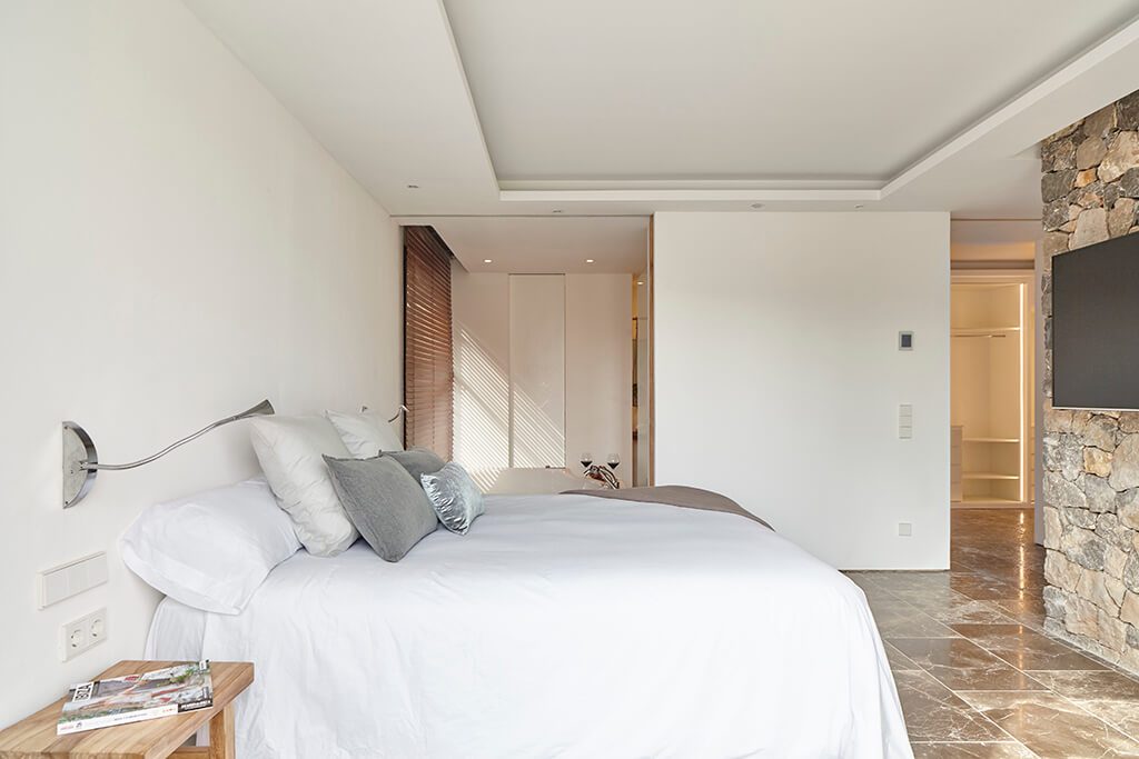 The beautiful country views that can be enjoyed from this villa lend it a bucolic air. Making the absolute most of its idyllic situation, Amatista is a unique property: sleek, contemporary and chic whilst also offering the traditional characteristics of a serene, peaceful and private Ibizan country retreat.