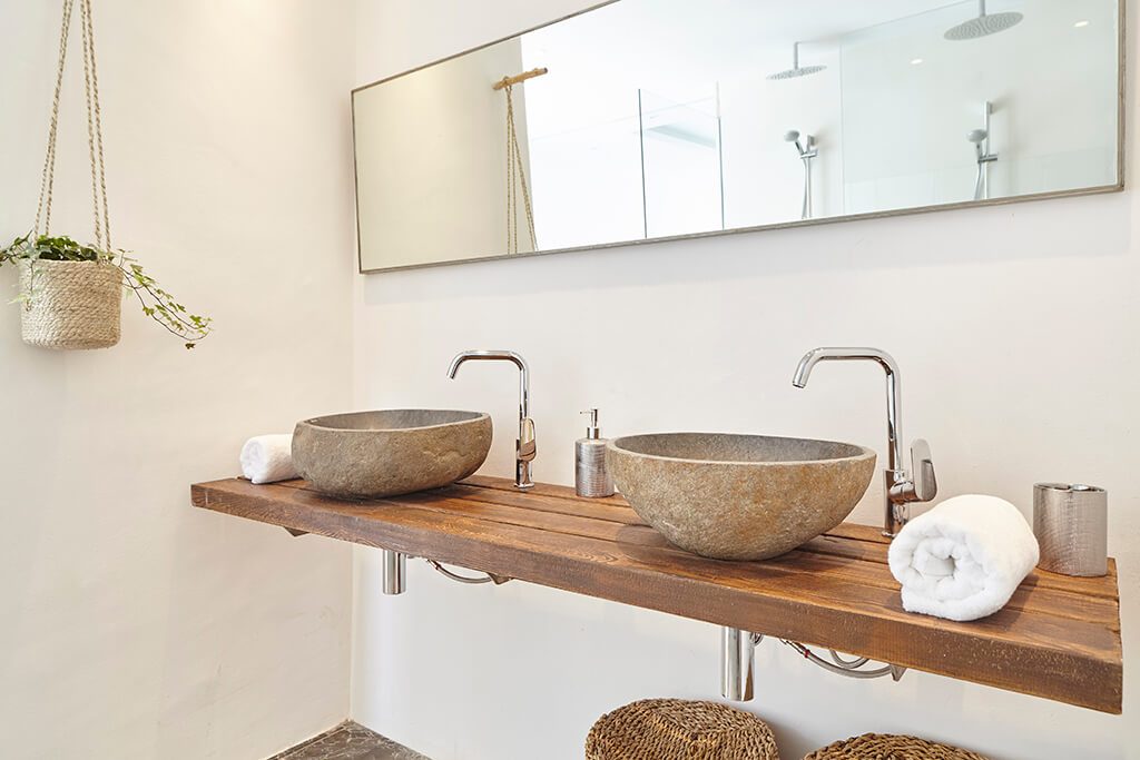 The property’s four bedrooms are complemented by standalone annex that offers a large studio space for the guest resident. Each bedroom, decorated in whites, marbles and light bamboos, boasts its own sumptuous en suite bathroom, some complete with Jacuzzi.