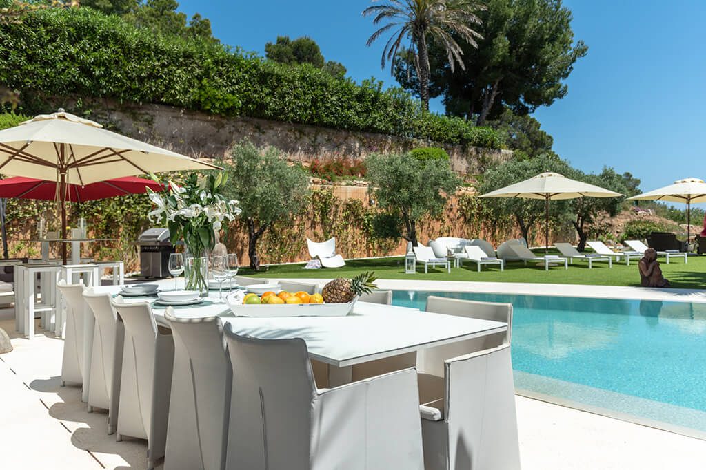 The stylish and luxurious property invites you to relax and chill-out in the beautiful gardens with an infinity pool enjoying a natural feeling of the sparkling Mediterranean island of Ibiza.