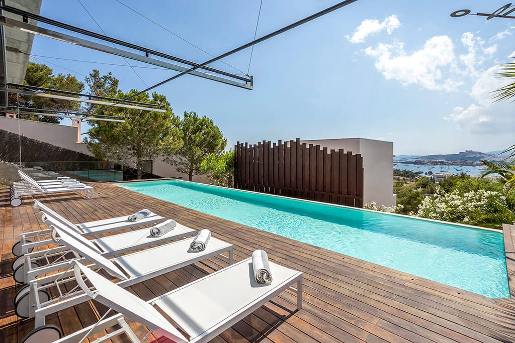 This property’s elevated position offers incredible panoramic coastline views over Ibiza Town, stretching as far as Formentera.