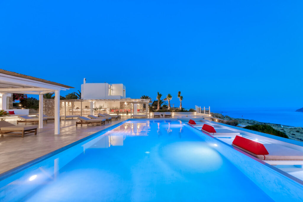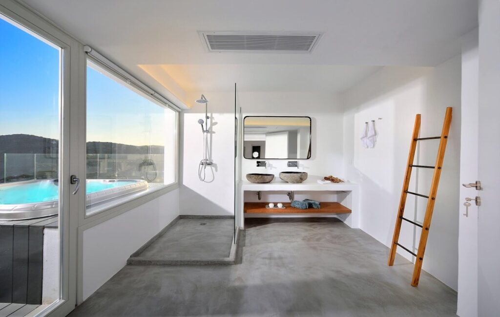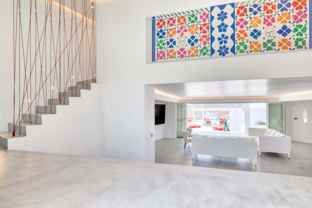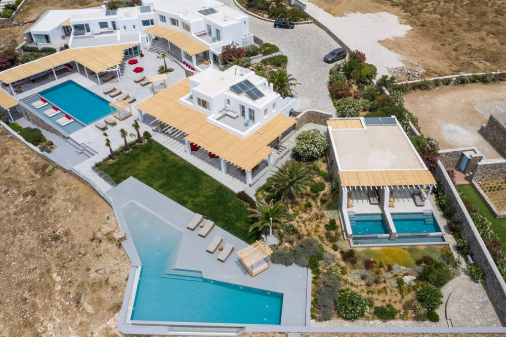 Breaking into 3 separate units, the architecture of the villa draws inspiration from its native Cycladic environment and incorporates traditional elements while remaining wholly contemporary.